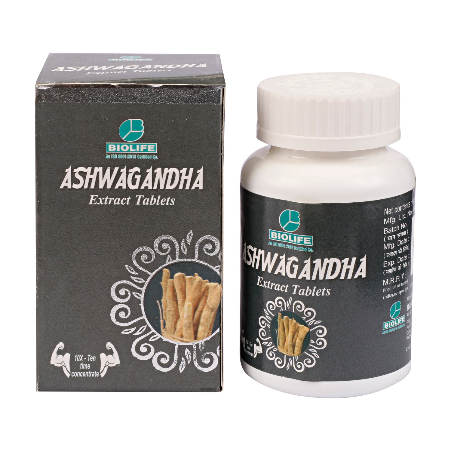 Biolife's Ashwagandha Extract Tablets (from Withania somnifera) are a herbal product containing 250 mg of Ashwagandha extract per tablet. This is a 10X - Ten time concentrate formula.