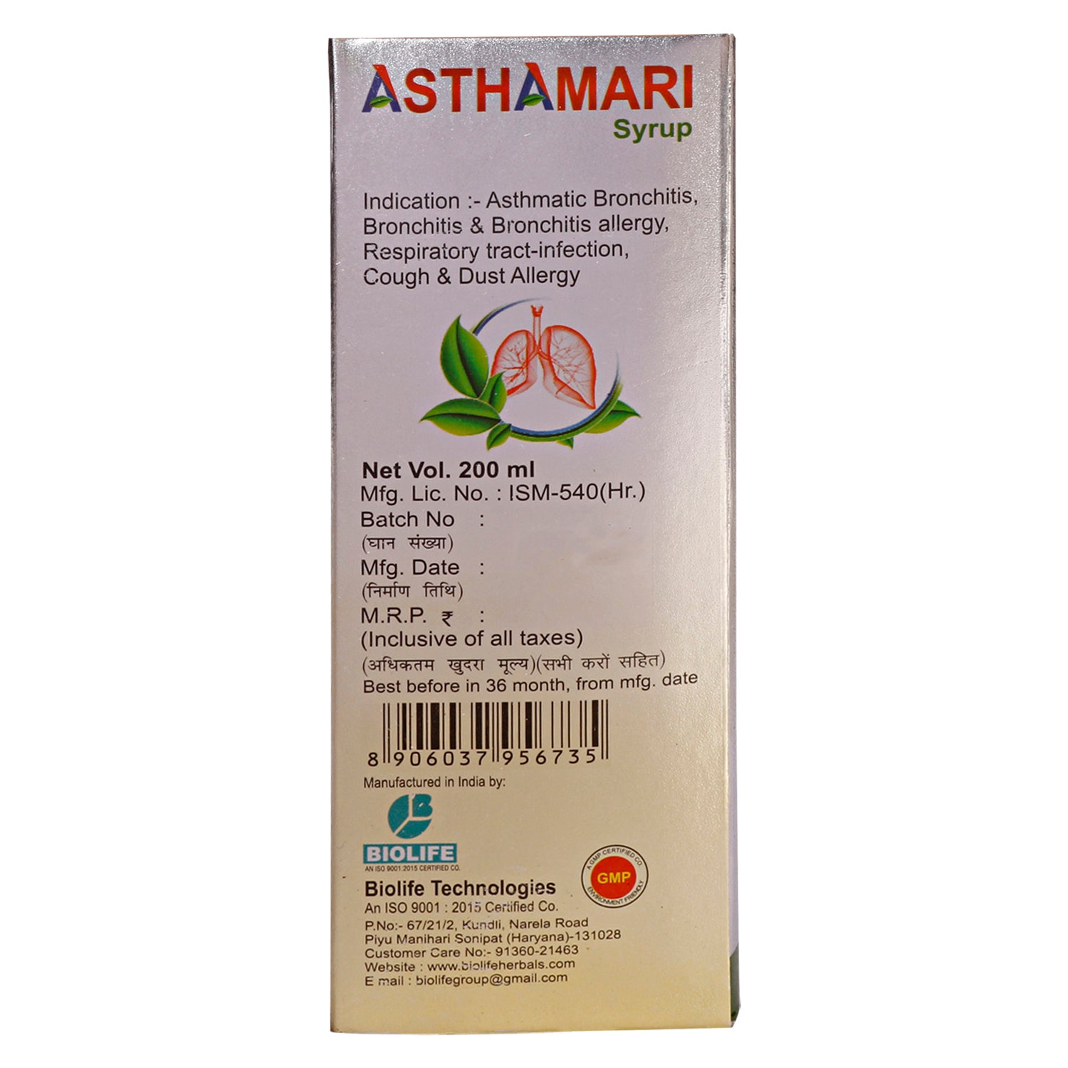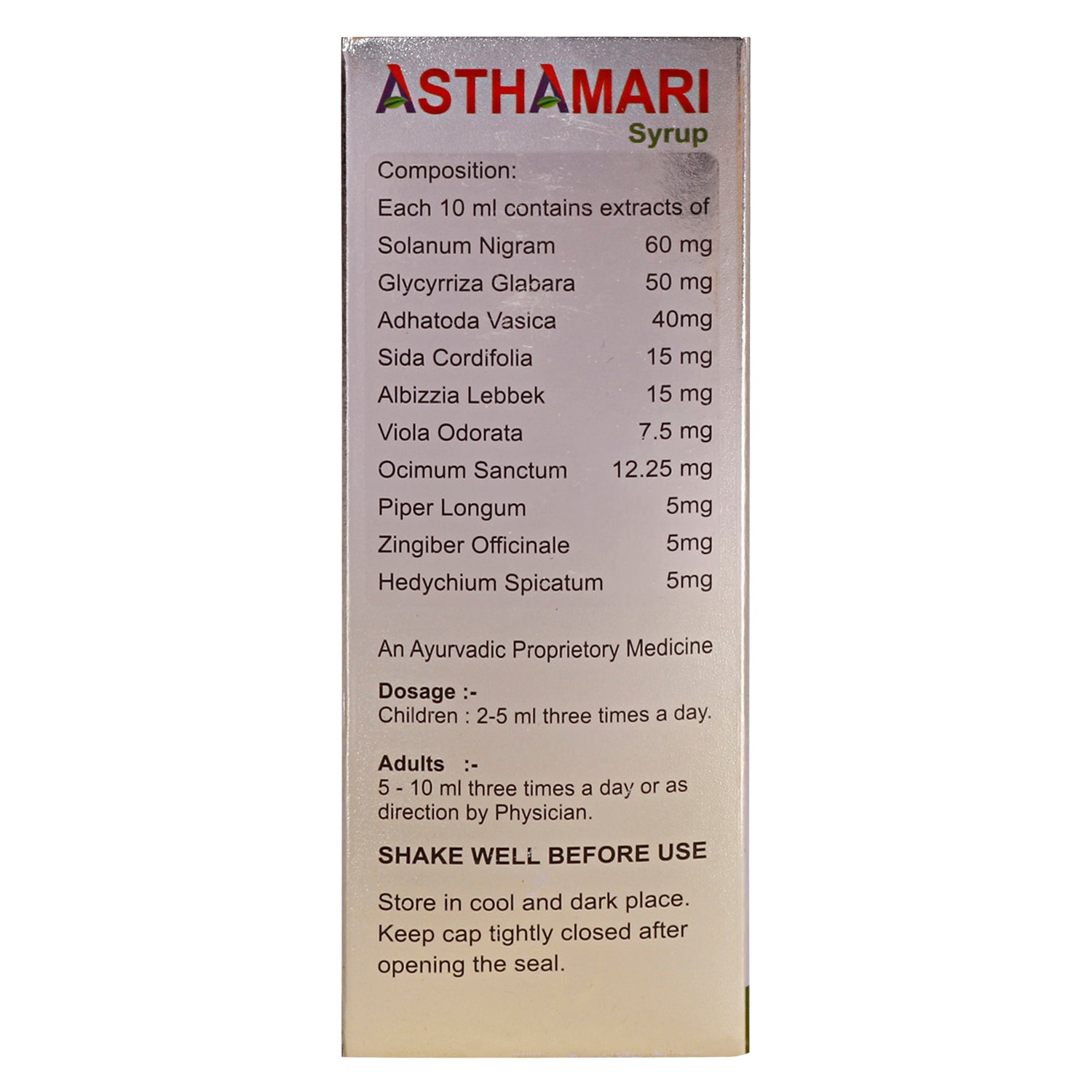 Asthamari is a natural remedy to control cough, bronchitis and asthma. Asthamari offers anti-histaminic action without sedation. The anti-viral and anti-bacterial properties of Asthamari control the respiratory tract infection, where as the bronchodilator effect provides rapid and complete relief in asthma.
