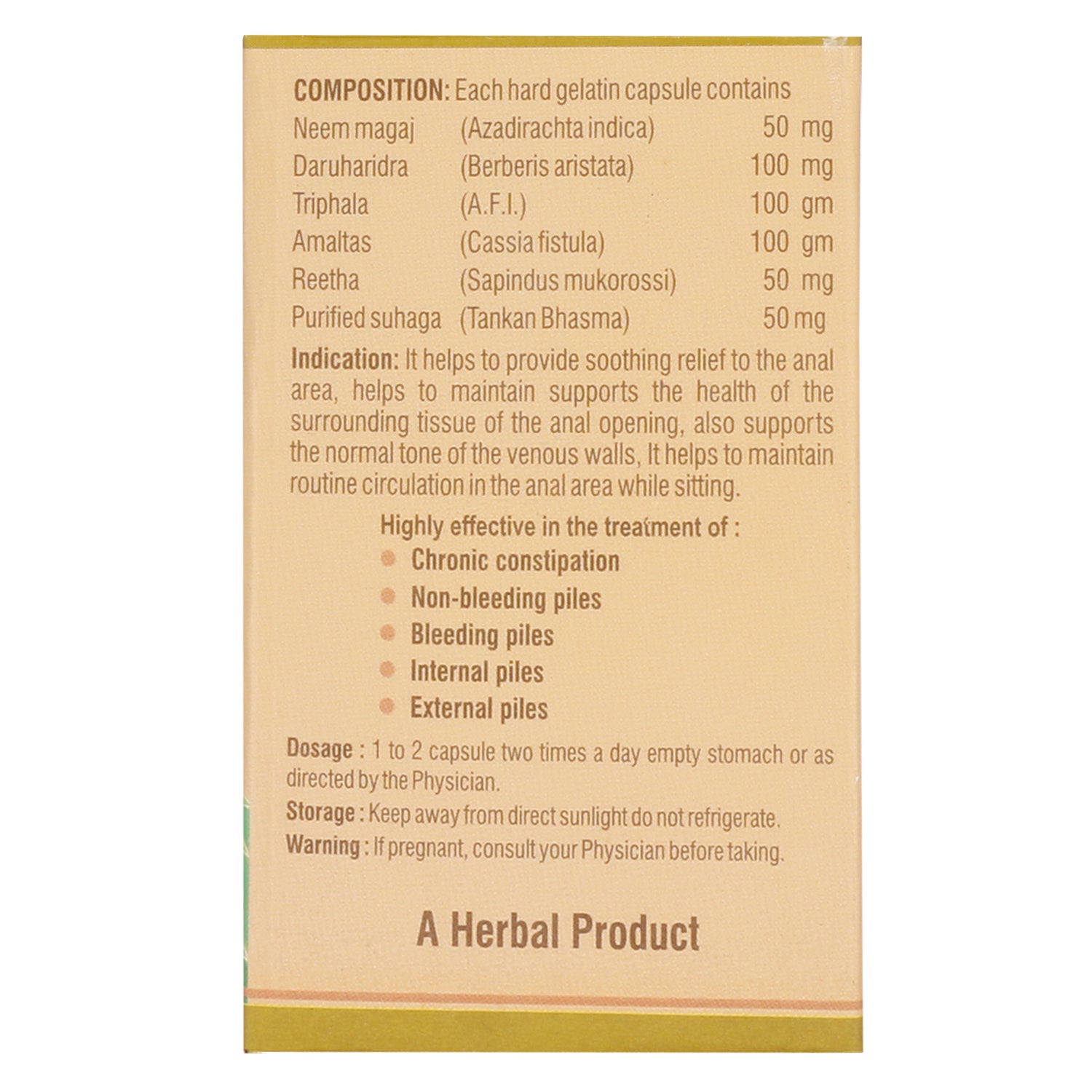 Fed up of your piles problem? Now is the time to bid goodbye to Piles and say hello to a healthy and happy life. BioArsh piles tablet is a highly effective and targeted solution that has been formulated under the supervision of experts. Each capsule has the goodness of flax seed oil, carbohydrates and other ingredients that would help you get rid of your piles problem. Indications: It helps to provide soothing relief to the anel area, helps to maintain supports the health of the sorrounding tissue of the anel opening, also support the normal tone of t