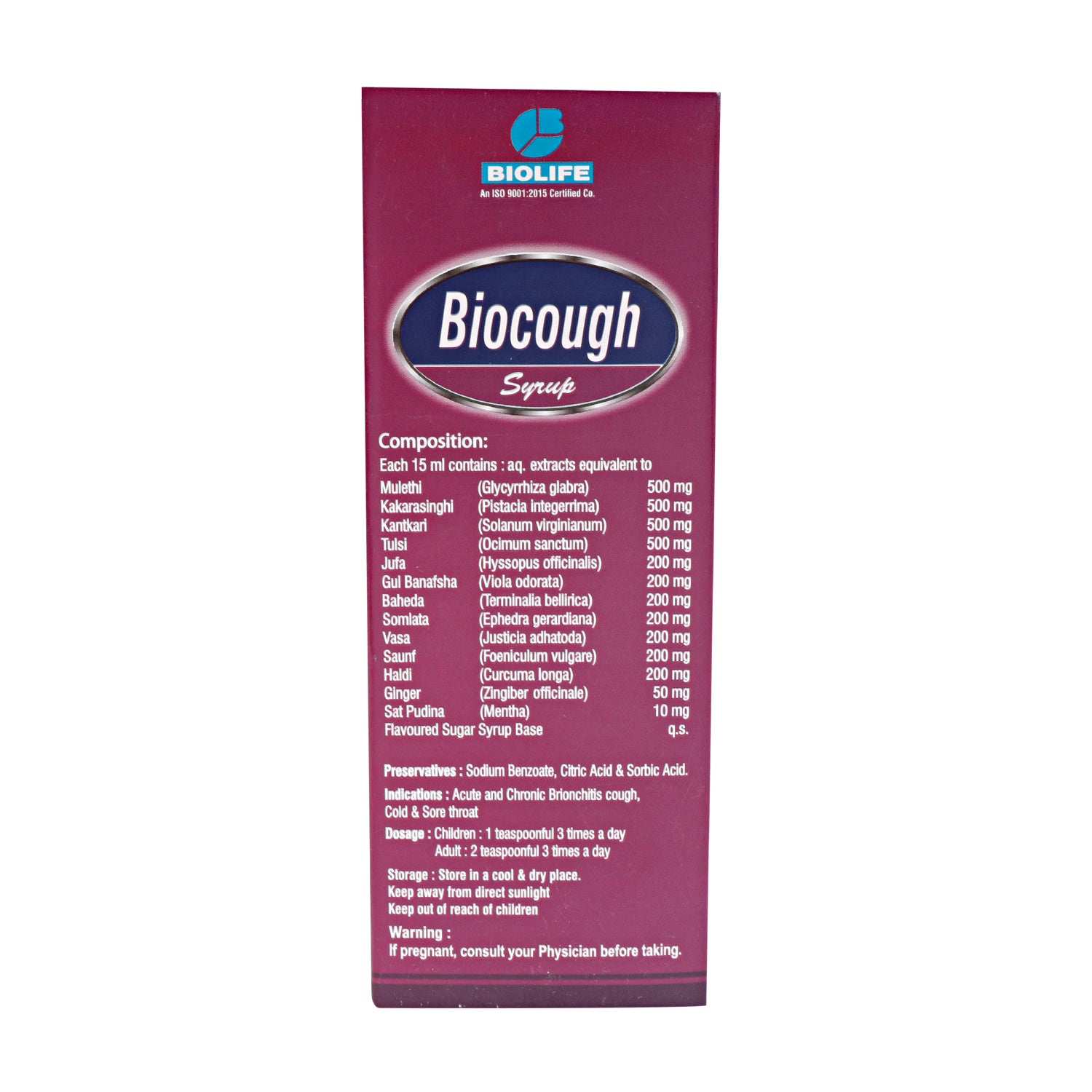 Cough and Cold are one of the first signs of season change. If not taken seriously they slowly turn to fever. Bio-Cough provides easy and effective relief from cough without side effects. Bio-Cough is enriched with natural ingredients like Mulethi, Saunf, Munnaka and Tulsiwhich are known for their beneficial properties. This herbal sugar based cough syrup attacks cough and provides fast relief.