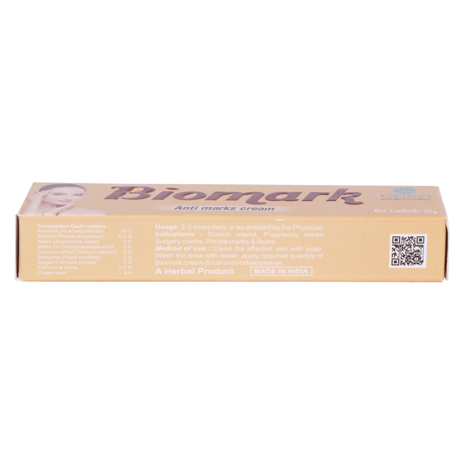 Restore your skin's smooth, even texture with Biomark Anti Marks Cream, a potent Herbal Product designed to effectively diminish visible skin marks. Formulated with a nourishing blend of natural oils and extracts, including high concentrations of Almond and Coconut oil, alongside powerful herbs like Water Lily and Manjistha, Biomark works to address various types of marks. It is specifically indicated for improving the appearance of Stretch Marks, Pregnancy Marks, Burn Marks, and Scar Marks. Achieve smoother, clearer skin with the healing power of this ISO and GMP certified cream.