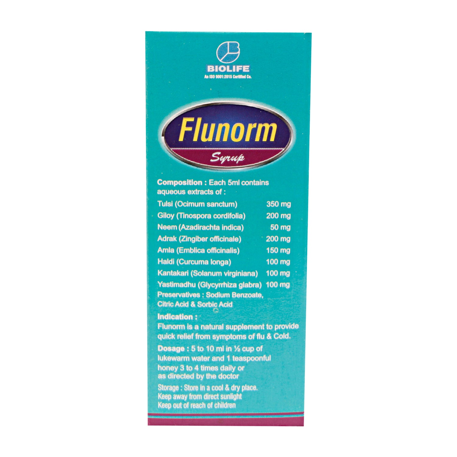 Find quick and natural comfort from seasonal discomforts with Flunorm Syrup. This herbal supplement is expertly formulated with a powerful blend of immune-boosting and anti-inflammatory herbs to provide quick relief from the symptoms of the common flu and cold.