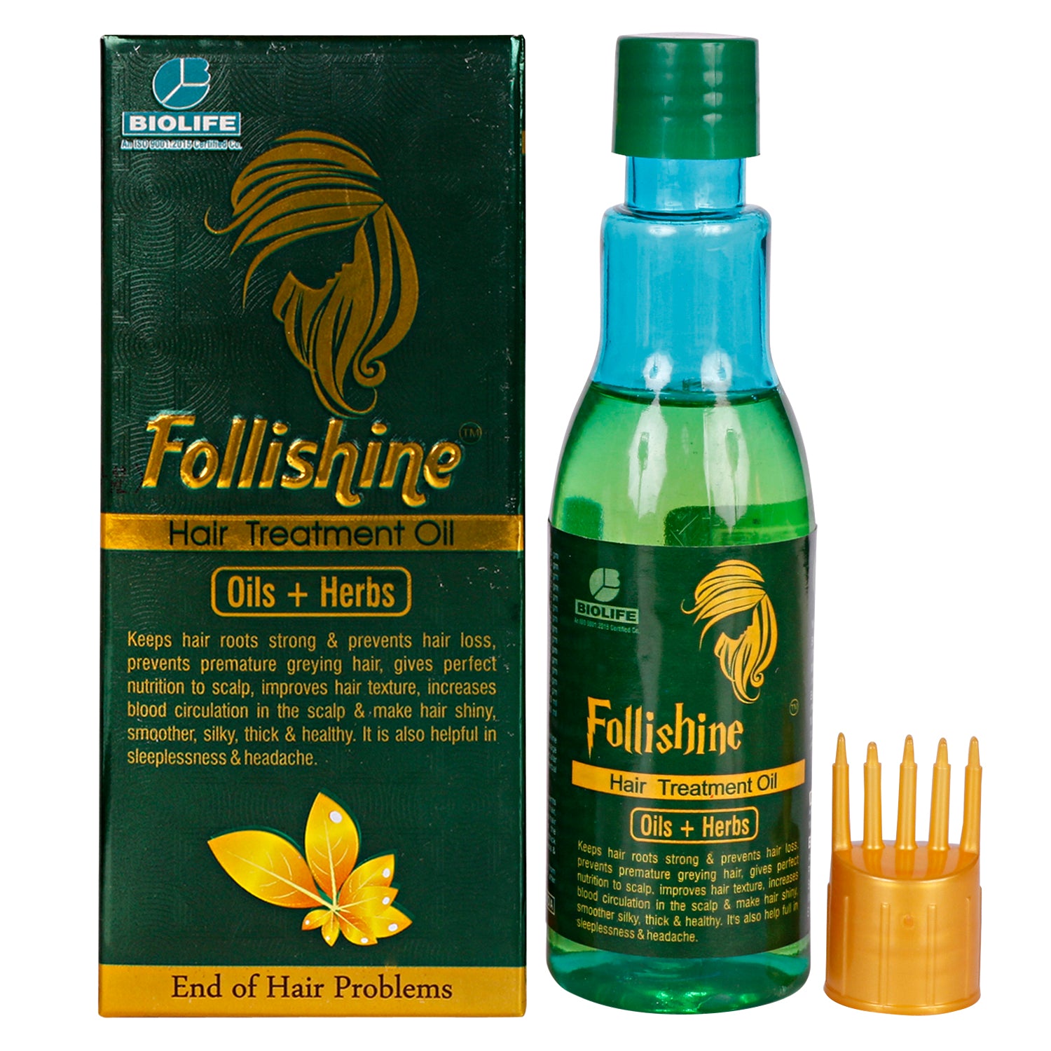 Experience the comprehensive solution for all your hair concerns with Follishine Hair Treatment Oil. This powerful Herbal Product is a potent blend of Oils + Herbs, meticulously crafted to deliver perfect nutrition directly to your scalp and hair roots. Infused with 14 time-tested Ayurvedic ingredients, including Amla, Bhringraj, Brahmi, and Til Oil, Follishine is designed to make your hair shiny, smoother, silky, thick, and healthy. More than just a hair oil, it's the complete End of Hair Problems, offering therapeutic benefits for relaxation as well.
