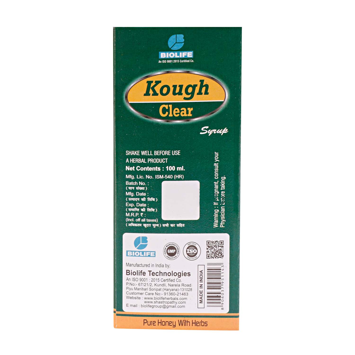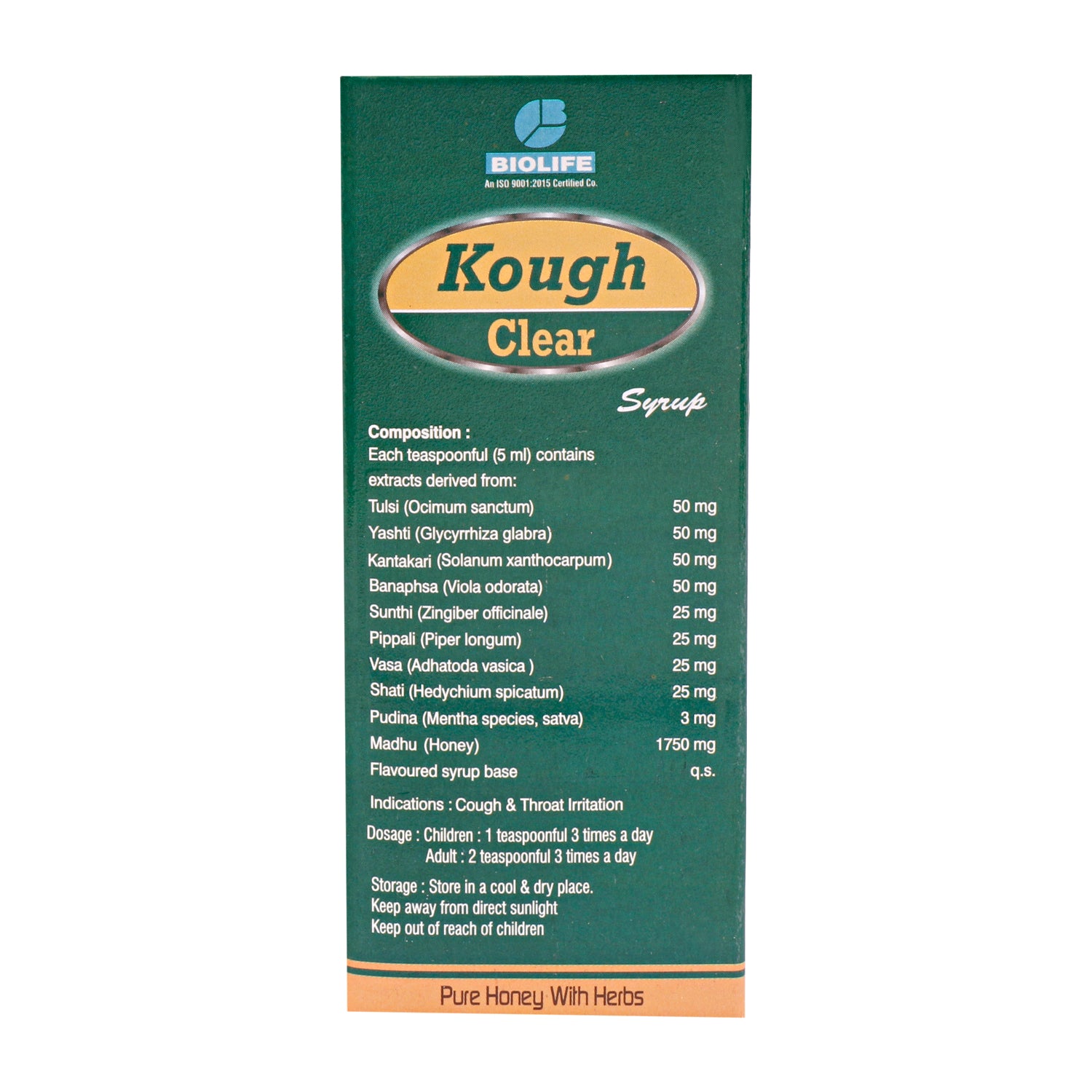 Soothe your throat and clear your respiratory system naturally with Kough Clear Syrup. This potent, non-drowsy herbal formula combines the healing properties of over eight time-tested herbs with the natural goodness of pure Honey.