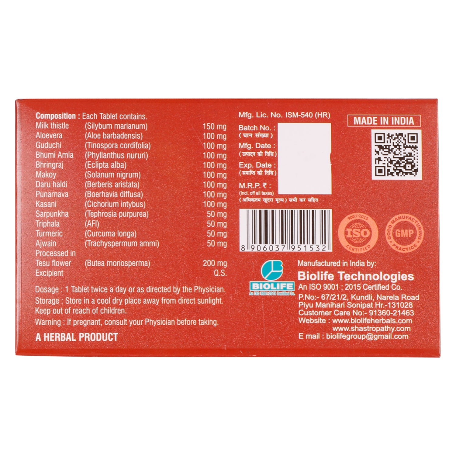 Ingredients: Ghritkumari , Giloy , Bhui amla , Bhringraj , Makoi , daruhaldi , Punarnava , Kasni , Sarpunkha , Trifala , Haldi , Ajwain , Palas fool