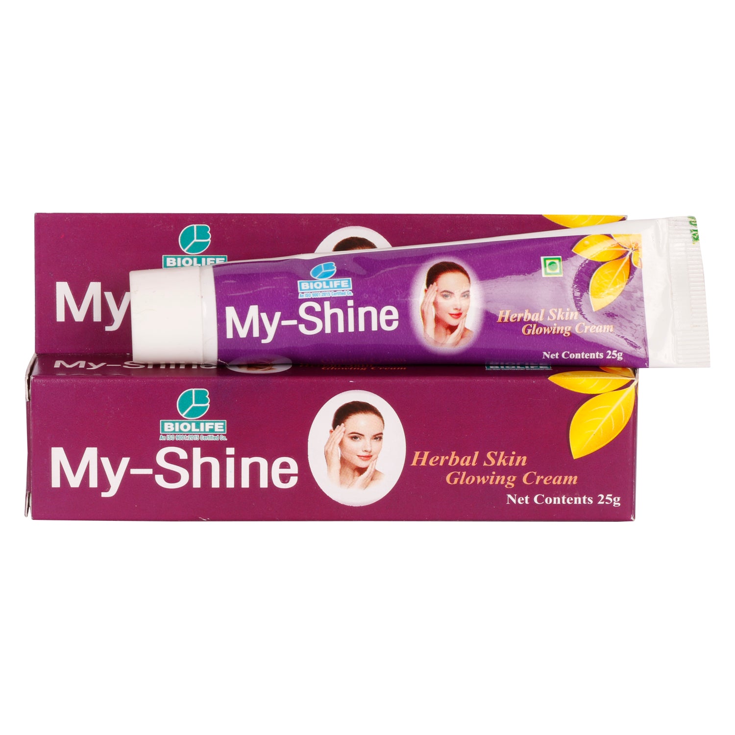 Our My Shine fairness creme is 100% natural, used for improving complexion while nourishing the skin. This herbal skin treatment product improves skin texture by making it soft and bringing charm to the dull skin. Our herbal skin care product also clears dark spots and gives an even tone to the complexion. Effective for discolored and pigmented skin, our My Shine product is suitable for all types of skin and does not have any side effect. Indications: Skin Glow.