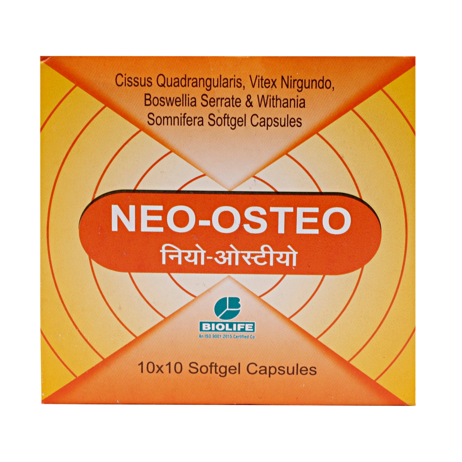 Neo Osteo contains Cissus Quandrangularis Extract along with Vitex Nirgundo Ext., Boswellia Serrata Ext. and Withania Somnifera. It is very high in Vitamin C. Vitamin C is an antioxidant nutrient that has been shown to reduce inflammation. Cissus Quadrangularis is well known for its bone and muscle healing benefits including its ability to reduce inflammation, boost bone strength. Indications: Neo Osteo contains Cissus Quandrangularis extract along with vitex nirgundo Ext., Boswellia Serrata Ext. and Withania somnifera. It is very high in vitamin C.