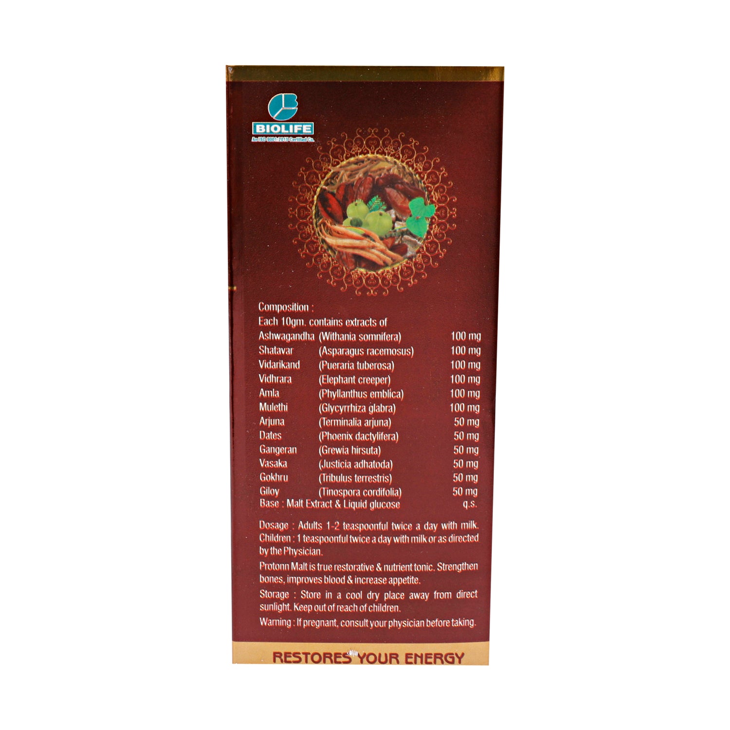 Protonn Malt revitalizes immune system and enhances the activities of Nervous system. It has strong anti-oxidant and hepato-protective effects. PROTONN MALT is a health supplement for all age group including during convalescence, after surgery, in wasting diseases, during pregnancy, in growing children and in geriatric patients. Indications: Immunity Booster, Energy Booster, Milk Tastener.