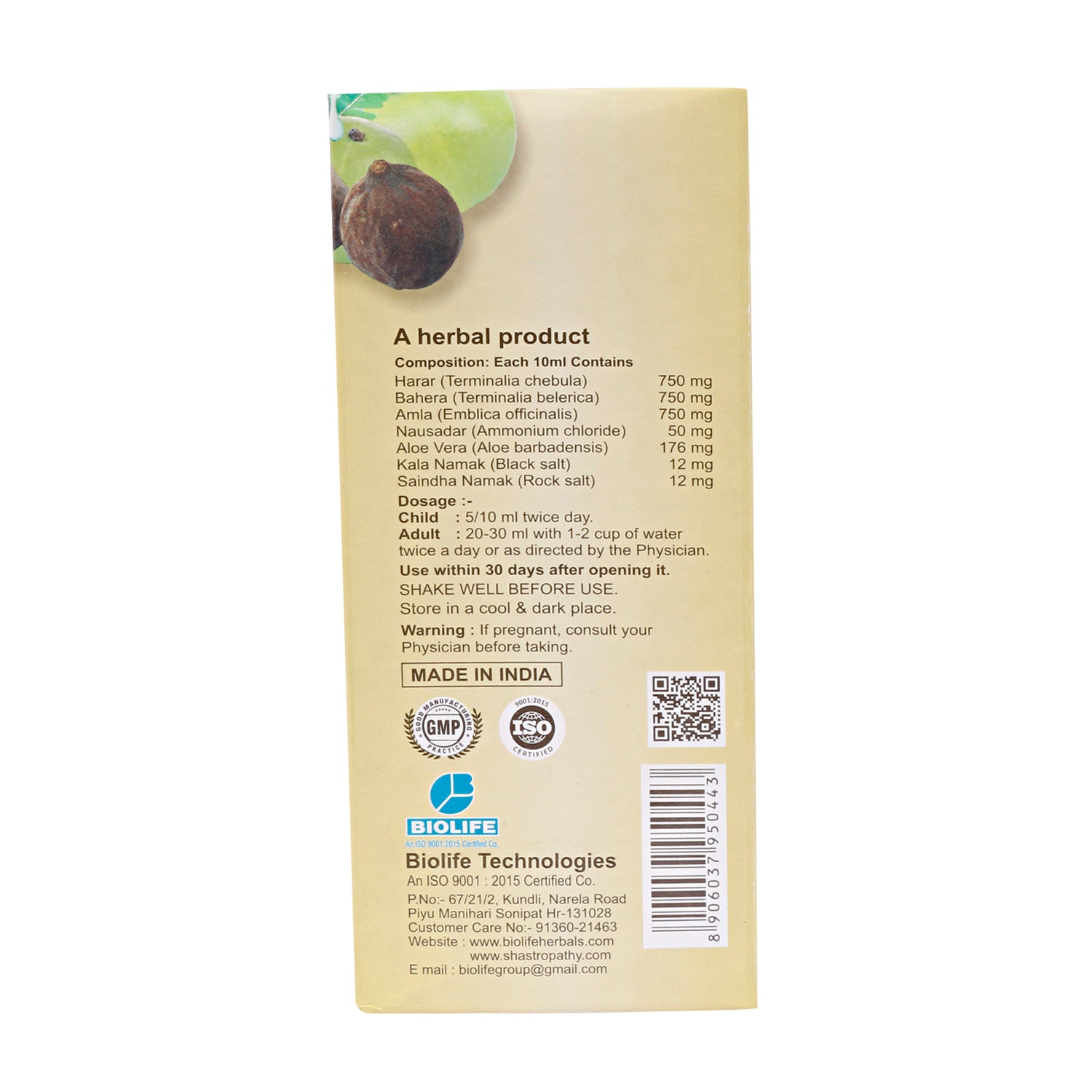 Ingredients: Harad , Baheda , Amla , Naushadar , Ghritkumari , Kala namak , Sendha namak